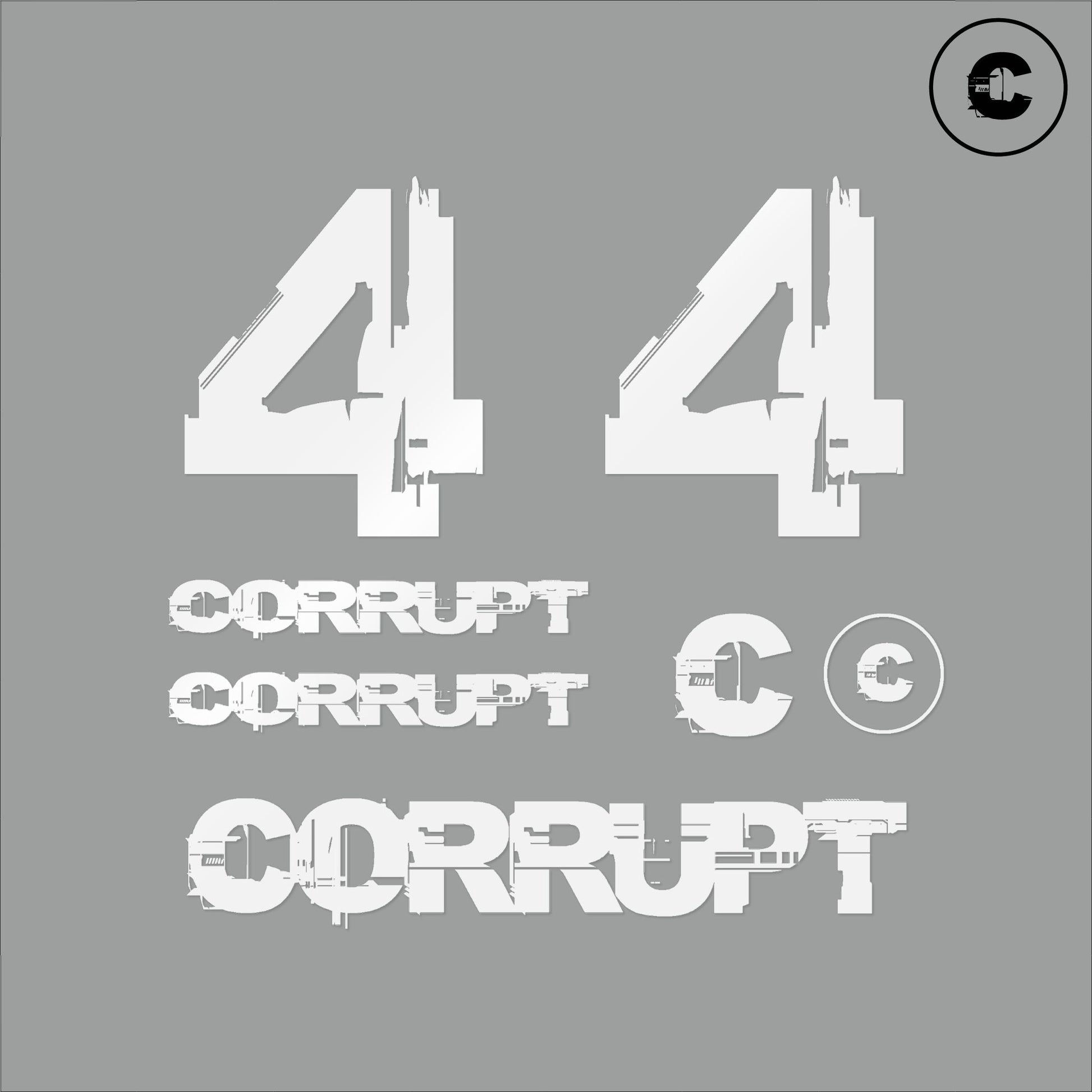 Corrupt: 3.5" width x 0.5" height - quantity two per sheet. (Lens)